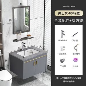 60x47cm [ジェントルマングレー] スレート洗面器キャビネット - フルセット + タオルバーミラーキャビネット