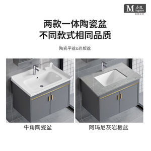 70x47cm [ジェントルマングレー] セラミック洗面器キャビネット - フルセット + タオルバーミラーキャビネット