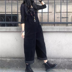 春と秋の新作ゆったり痩身大きいサイズカジュアルストレートワイドレッグオーバーオール女性の多用途ファッションジャンプスーツ