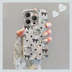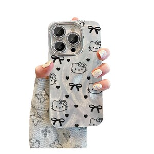 Apple 16pro フェザーガーゼ携帯電話ケース 15pro リボン KT 猫 14promax 新しい 13pro ゴーグルに適しています。