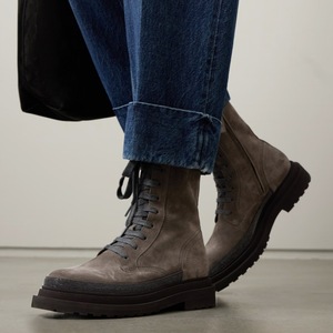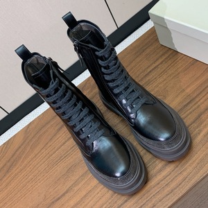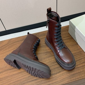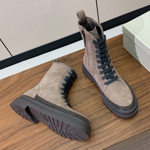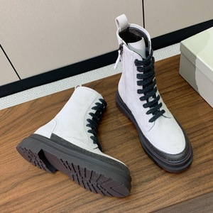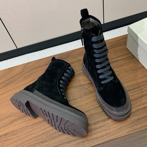 BC秋冬女士麂皮串珠链厚底马丁靴圆头系带反绒皮踝靴百搭短靴子