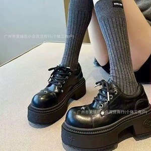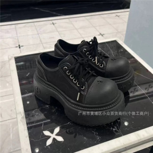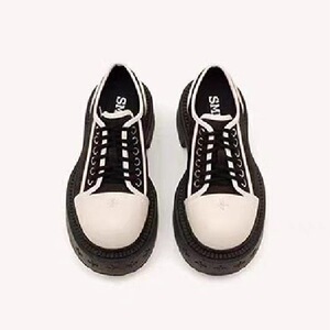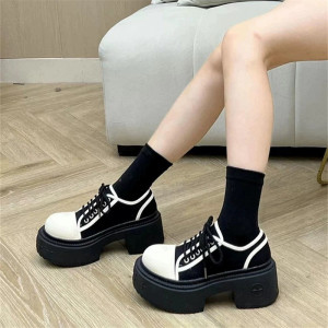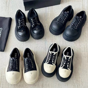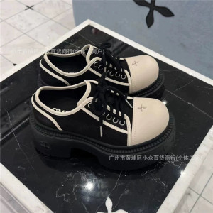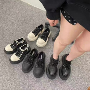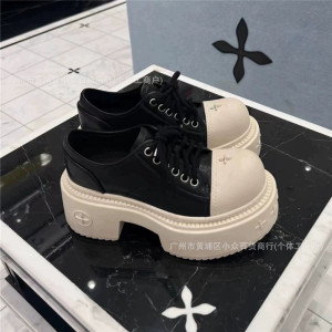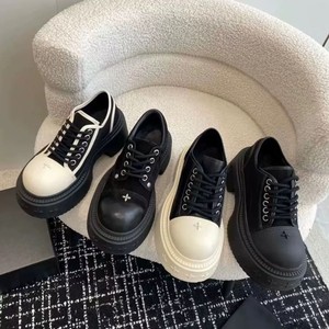 SMFK クロスフラワーレトロ本革厚底ラージトゥシューズカジュアルパンダシューズトレンディなブランドキャンバス身長増加靴女性の黒のベルベットレザー