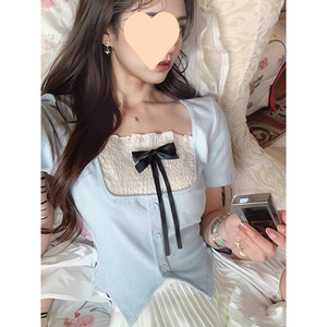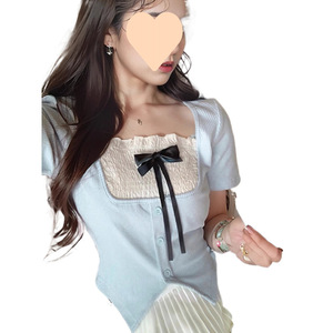 フレンチシックなホットガールデザインニッチニッチリボン半袖シャツハイウエストプリーツスカートスリムスーツ