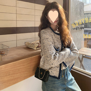 フレンチスタイルの女性用スプライスデニムショートジャケット2025春秋の新しいスタイルのスリムツイードショートトップ