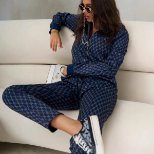 クロスボーダーカジュアルアマゾンヨーロッパとアメリカのファッションスーツ長袖ジッパージャケットトップレースアップパンツレディースツーピースセット
