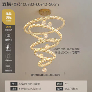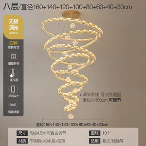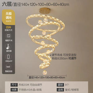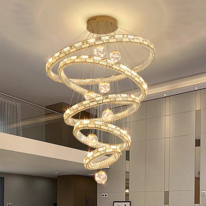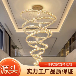 高さのある複層中空大型シャンデリア、軽くて豪華なクリスタル中空階段間リビングルームランプ、ハイエンドヴィラホールシャンデリア