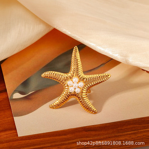 クロスボーダーインパーソナライズされた誇張されたハイエンドのステンレス鋼リング、色あせしない女性用ヨーロッパとアメリカのオーシャンシリーズオープンリング