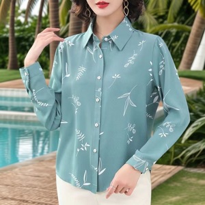 中年春秋妈妈新款长袖衬衫中老年洋气上衣女装中老年人50衬衣