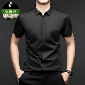 マルベリーシルクメンズ半袖シャツメンズ 2025 夏ストレッチビジネスカジュアル無地アイスシルクシャツ紳士服