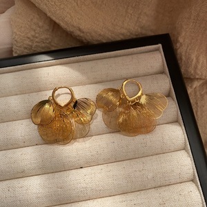 ヨーロッパとアメリカンスタイルのレトロな中空ブレードタッセルイヤリング、金の枝と翡翠の葉のイヤリング、誇張された女神のハイエンドイヤリング
