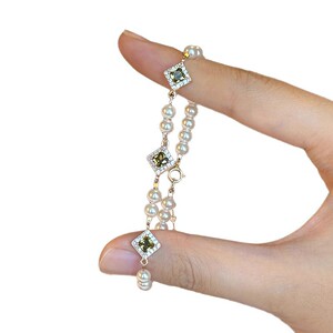 オリーブグリーンスクエアジルコンホワイト石家真珠マイクロ象嵌ジルコンブレスレット女性のライト高級ハイエンド絶妙なハンドジュエリー