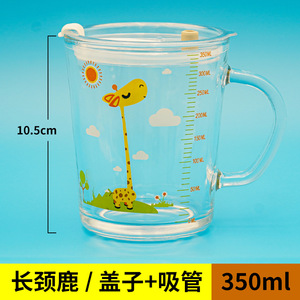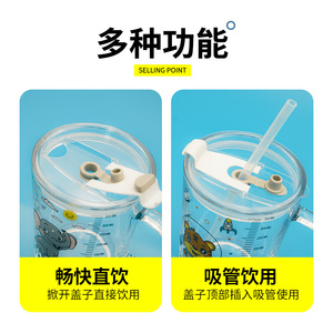 インターネット有名人ミルクカップ子供用スケールカップ朝食ミルクカップ家庭用醸造粉乳ストロー付きガラスウォーターカップ
