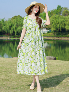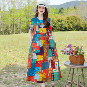 新しい夏のハイエンドコットンシルクドレス女性のミッドレングスファッショナブルなアウターウェア人工綿花柄コットンシルクスカート