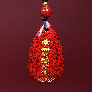 小さなホットスタンピング阿弥陀仏ペンダント【赤いトップビーズロープ付き】