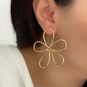 花のイヤリング卸売、クロスボーダー、誇張されたデザインのイヤリング、女性用電気メッキ合金、多用途、中空ライン編み込みイヤリング