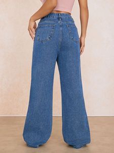 ヨーロッパとアメリカのクロスボーダー独立系デニムレディースデイジー刺繍リッピングルーズワイドレッグデニムパンツ女性用JEANS