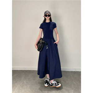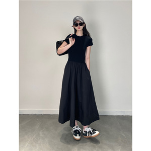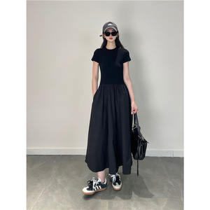 3500でカウンター上!セレブスーパーモデルと同じスタイルの糸綿スプライシングポプリンコットンカジュアルシンプルスリム半袖ドレス