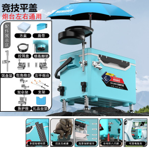 ティファニーブルー [競技用フラットカバー] 同じスタイルで当社の方が優れています - 7 [左右のダブルポール] 左右にタレット 1 つ + 餌トレイ + クッション付きの四角いボックス