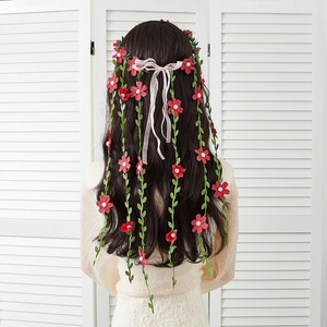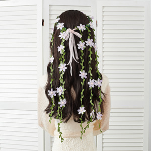 スーパーフェアリーリースヘッドバンドベールブライドメイド子供用ヘッドバンドパフォーマンスフラワーガール誕生日フォレストプリンセス旅行写真ヘッドバンド
