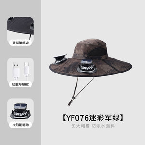 YF076 迷彩ミリタリーグリーン ダブルファン [15cmつば+スチールリングデザイン+ソーラーバージョン]