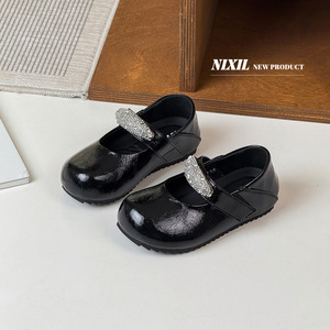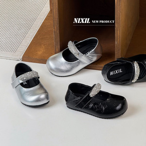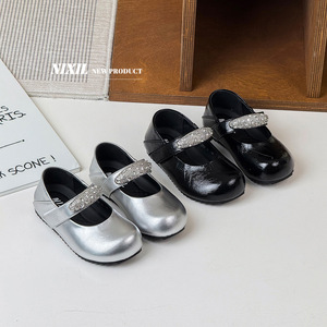 子供靴 2025 秋の新子供革靴ファッショナブルで多用途なラインストーンプリンセスシューズ浅い口ファッショナブルな女の子の靴
