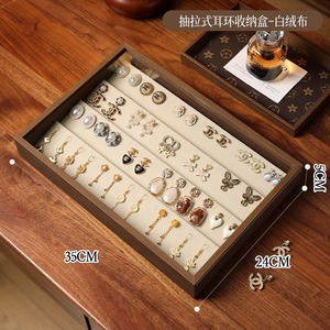 ウォルナット木目調ホワイトベルベットイヤリングトレイ 24ペア引き出し式