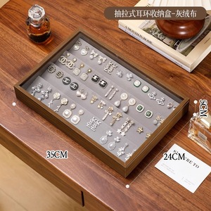 ウォルナット木目調グレーベルベットイヤリングトレイ 24 ペア - プルアウトスタイル