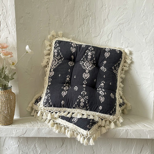 2025跨境新款竹节麻流苏坐垫椅子垫棉麻餐椅垫柔软凳子垫蒲团批发