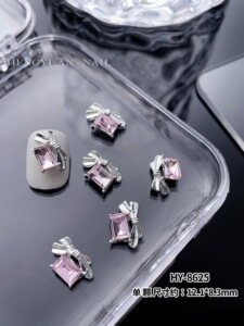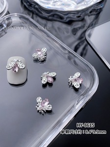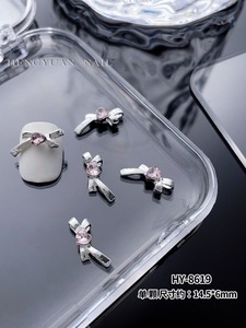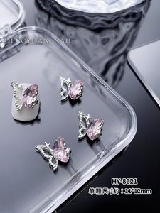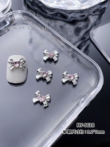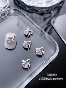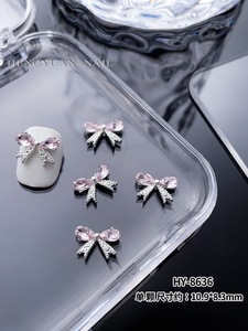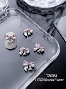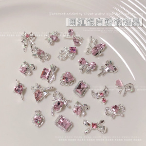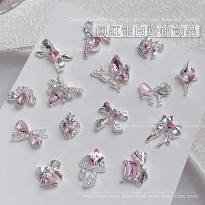 インターネット有名人のリボンスーパーフラッシュジュエリーネイルシルバー合金ダイヤモンドスーパーフラッシュガールピンクダイヤモンド蝶愛ネイルアートジュエリー