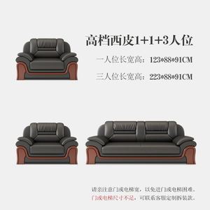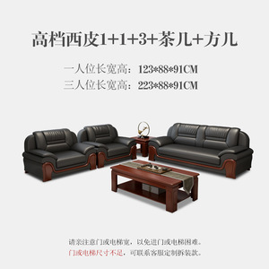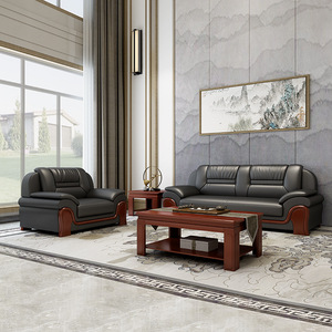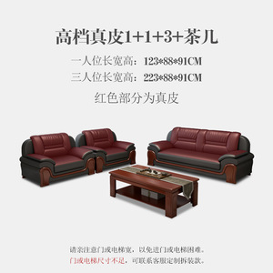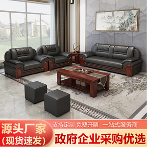オフィスソファとコーヒーテーブルの組み合わせ、レザー製受付・商談用、シンプルなレザーオフィス3人掛けソファ