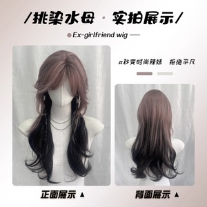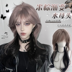 [Cangzhuo] 女性用ウィッグ、ロングストレートヘア、少しカール、ベージュブラウン、ハイライトクラゲヘッド、ハイレベルウルフテールウナギヘッド、ハロウィン