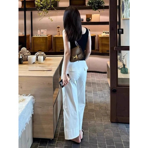 ホワイトスーツワイドレッグカジュアルパンツレディース2025年夏新作小柄ハイウエストカバーストレート9点パンツ