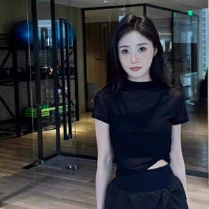 ヨガ服女性の新 2025 夏通気性ヨガフィットネスアウターウェアメッシュファッション半袖女性卸売