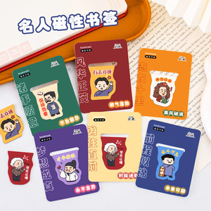卡通名人励志文字磁性书签学生折叠磁铁书页夹小礼品新青年书签夹