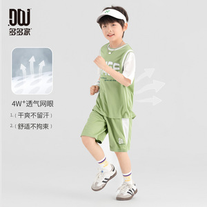 多多家ソフト弾性男の子用バスケットボールウェア、夏用半袖ショートパンツ、メッシュ素材のフェイクツーピース、中高生向けトレーニングウェア、トレンディなスタイル
