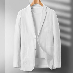 リネン生地カジュアルスーツメンズ夏薄い綿とリネンのスーツジャケット白春と夏のトップスシングルピース