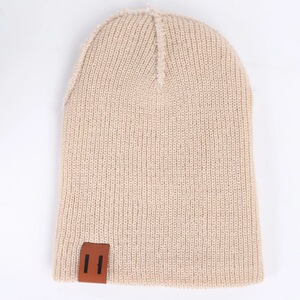 親子レザーラベルニット帽