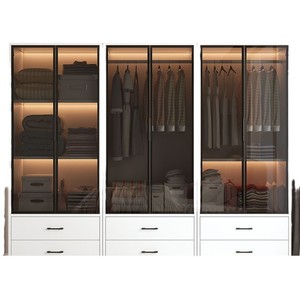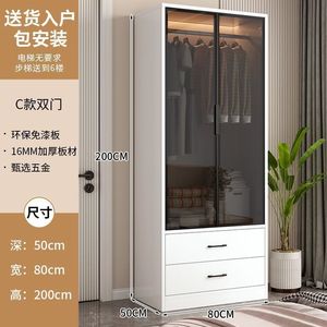 ワードローブホームベッドルームモダンシンプルなインターネットセレブライト高級小型キャビネット組み合わせマスターベッドルームガラスドアワードローブ