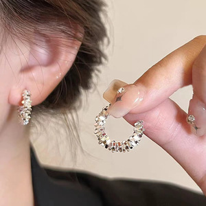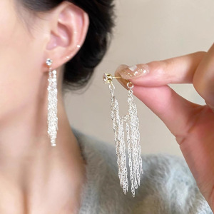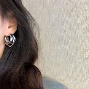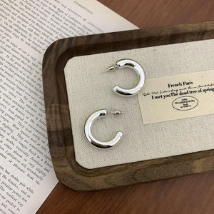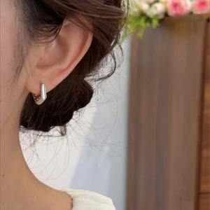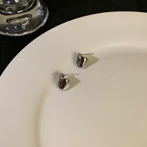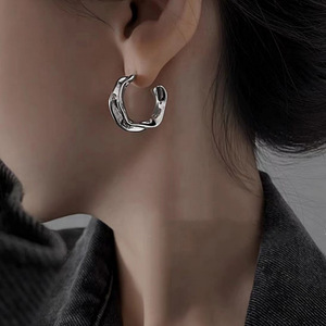 幾何学的なシルバーメタルイヤリング、フェミニン、軽い高級感、ニッチなデザイン、ハイエンドイヤリング、コールドスタイルイヤリング