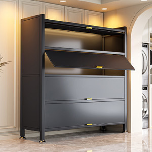 家庭用スチール製収納キャビネット壁一体型靴キャビネット玄関収納キャビネット多機能防塵鉄製収納ラック
