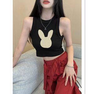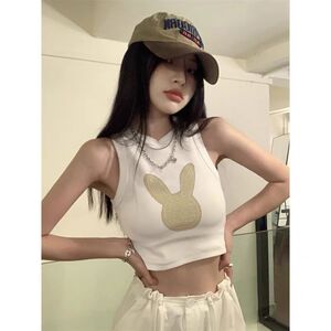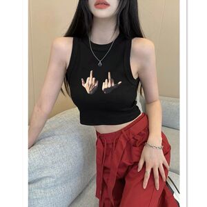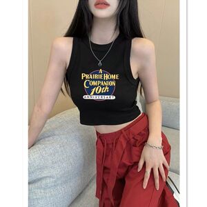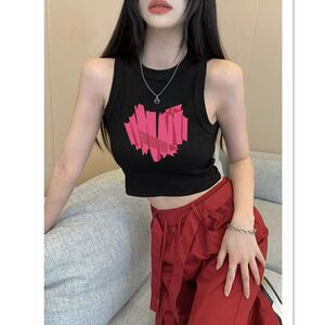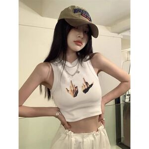 2024 新しい夏のノースリーブレタープリント白底キャミソール女性のためのショートホットガールトップ