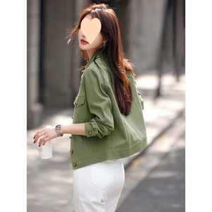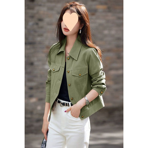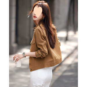 カジュアルデザインワークウェアスタイルデニムジャケット2025春新作スリットヘムジャケットレディースジャケット