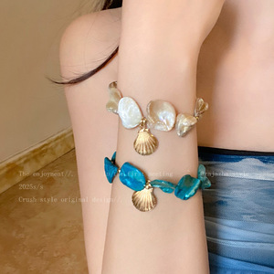 ブルースターフィッシュナチュラルシェルブレスレットガールズシーサイドユニークな美しいイヤリングネックレスアクセサリーニッチホリデーブレスレット