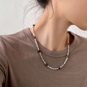 ガラスパールタイガーアイストーンネックレス