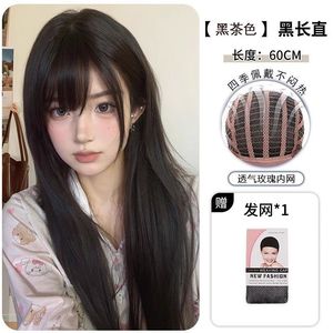 女性用ウィッグ ミディアムロングヘア フジカ風 ブラック ロングストレート シミュレーションヘア フルヘッドバンド ファッション フルヘッド前髪 ナチュラルウィッグセット