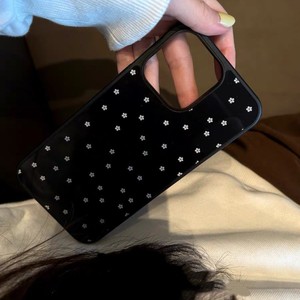Apple 16/iphone13P/12/11/X 光沢のある表面に適した白い花と黒のエッジのパッチ携帯電話ケース