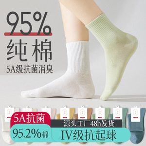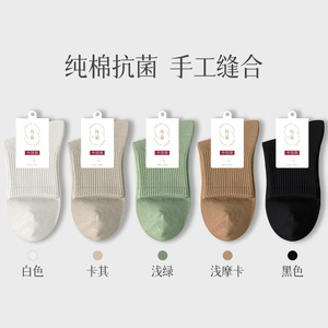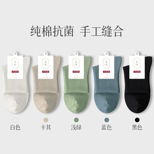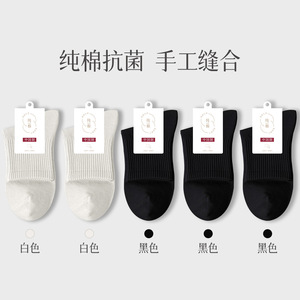 Plus袜子女士中筒95%纯棉春夏款无骨抗菌吸汗透气休闲运动女袜潮