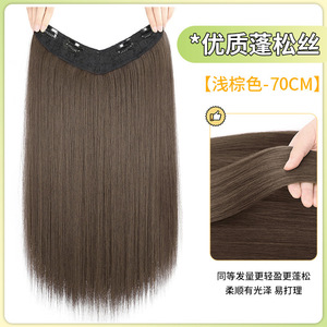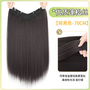 女性用V字型ヘアエクステンション、ワンピースロングストレートヘアエクステンション、自然な増毛、目に見えないシームレスヘアエクステンション