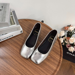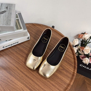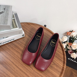 韓国の新しい春夏の柔らかい革の浅い口のスクエアトゥの女性用フラットシューズ、ファッショナブルで多用途なバレエシューズ