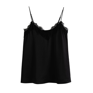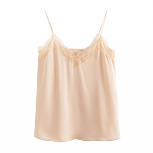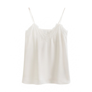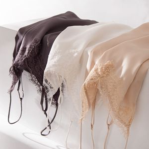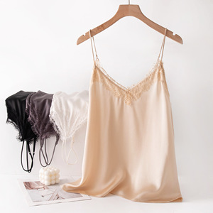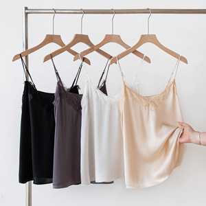 桑蚕丝透气固定杯蕾丝法式网纱吊带背心女修身显瘦外穿打底上衣